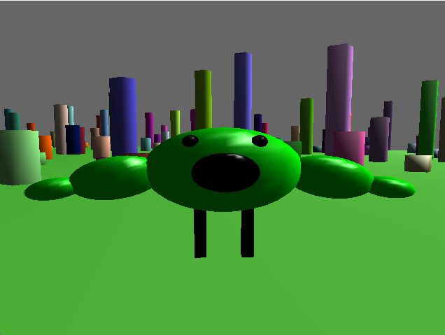 This is an image of the A3 assignment of Bert. It is showing the character facing the arcball camera mid animation with Gouraud Shading.