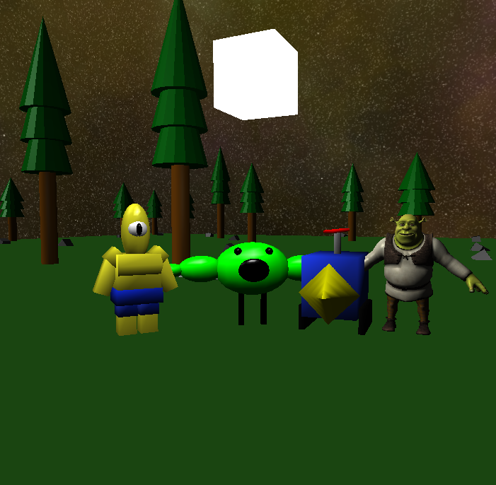 This is an image of our MP project showing all of our characters standing infront of the point light | |