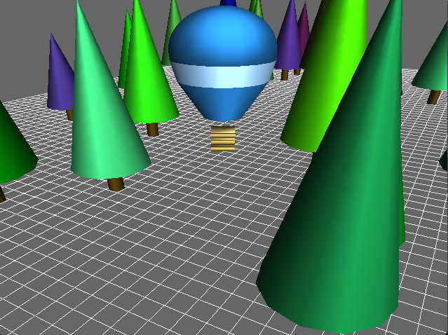 A3 - This program is shows Esme's hot air balloon in a forest. This program uses Phong Illumination and Gouraud Shading and implements an Arcball Camera. The hot air balloon is constructed from CSCI441 basic models. It floats up and down so that Esme can always get the best views. The user can move the balloon around the map, but it will not fall off the edge of the world. The camera will follow the balloon, but the camera view should be changed manually.