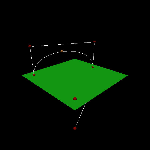 L08 - This program is an introduction the generation of Bezier Curves using control points read in through a file. The control points, control cage, and bezier curve are drawn, and a sphere is animated moving along the curve.
