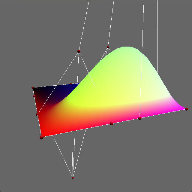 L09 - This program is an introduction the generation of Bezier Patches using the Bezier Curve Equation on 4 Bezier curves. The visibility of the control cage and control points can be toggled.