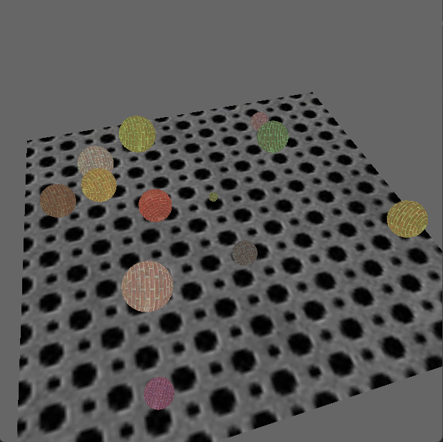 L11 - This is an introduction to collision detection with spheres and a bounding box. Each marble moves along its direction vector and checks for collisions with the bounding box and other marbles. If a collision is detected, a new direction is calculated, and the marble moves along that direction instead.
