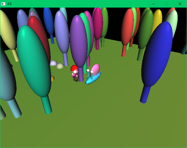 Midterm Project![]() ![]() Midterm Project This program consists of 3 different chacters, each movable and with their own animations. The scene consists of trees and bushes that are randomly generated. There is an arcball camera and free camera, with a toggle-able first person camera. It also includes 3 different types of lighting (spot light, directional light, and point light). Jarrion's Sick Ride ] ]A3 - Give Your Hero Life This program consists of the a car for Jarrison. In animaiton, the antennae moves up and down and changes colors when the car is moving. This is in a forrest scene that is randomly generated. The car can move around and uses an arcball camera to navigate. Jarrison Vibing