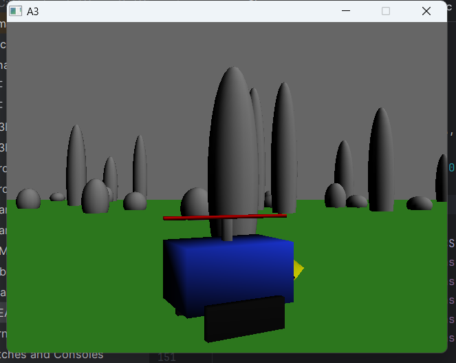 This is a screenshot of my A3! This is Jerry's vehicle. It can move forwards and backwards, as well as turn. The camera also rotates around it.