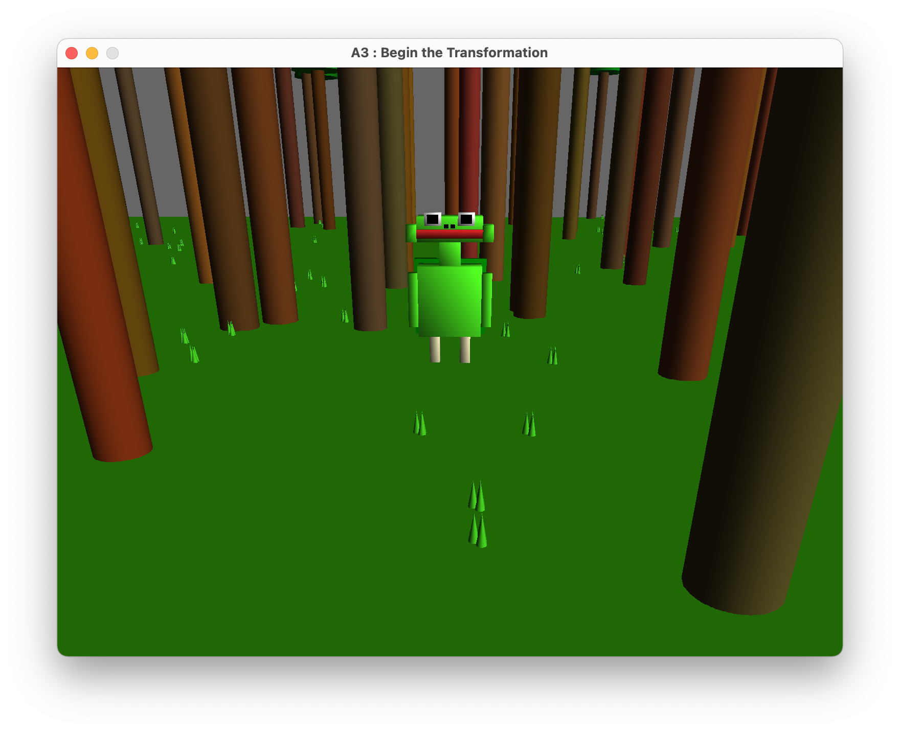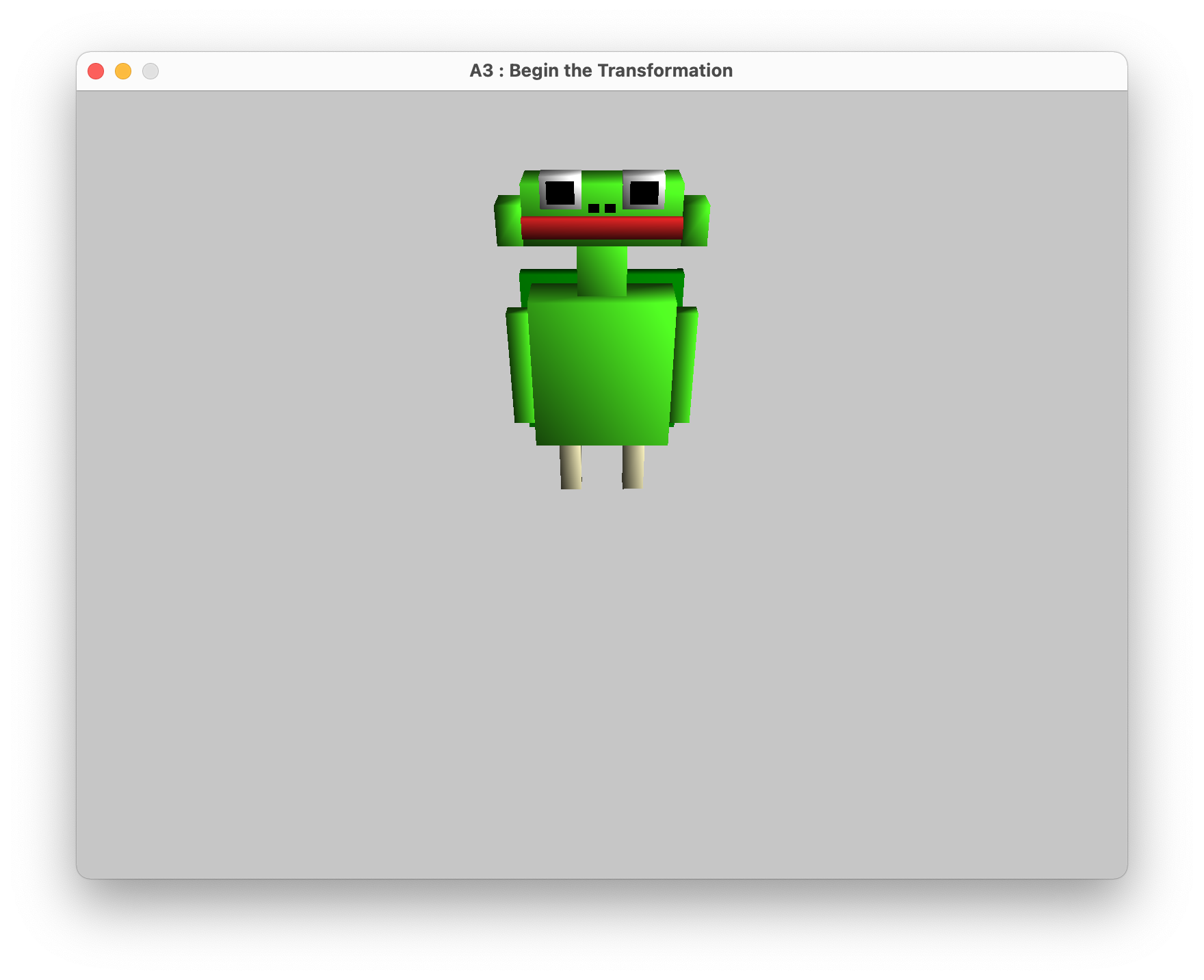 We created our character using openGL primitives, which took a long time. Then we had to establish a constant animation