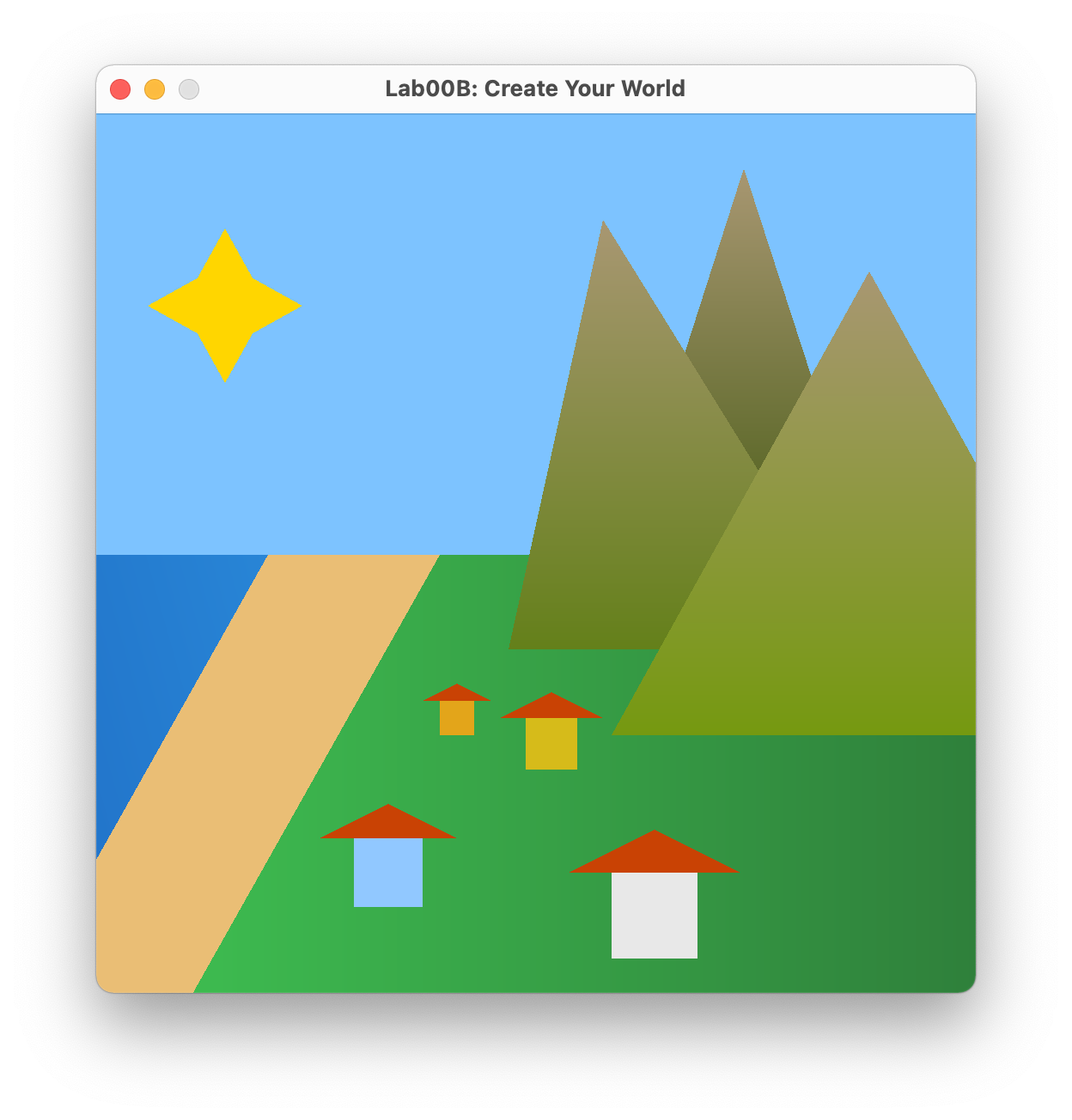 a 2D space to start creating figures, using vertices and colors, we were able to create