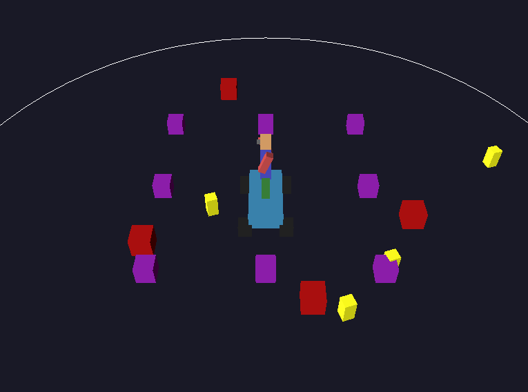 A4: I learned new OpenGL skills by building upon my previous A3 assignment and making a game that incorporates a particle system and collision detection. The project includes a hero that is controllable by the user standing on top of a car, both constructed by heirarchical modeling. In addition to the hero, the project also renders obstacles, enemies that can do damage to and kill the hero, and coins that the hero must collect all of in order to win the game. Finally the project shows a circular arena that the hero and enemies must stay inside of otherwise they will die. The enemies continuously move toward the hero with their heading being continuously updated every frame and collision detection is utilized for all objects (hero, coins, enemies, obstacles).
